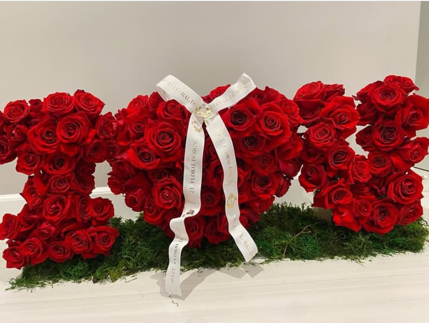 A luxurious display of premium red roses artfully crafted into a bold “XO” design, symbolizing love and affection. This masterpiece is set on a lush moss base and adorned with an elegant ribbon, making it a perfect centerpiece for romantic occasions, proposals, or grand.